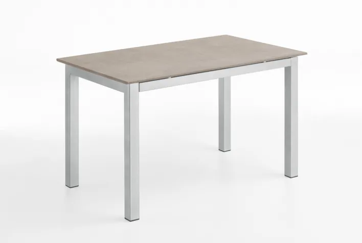 Die Tischplatte besteht aus einer robusten Holznachbildung, die durch eine folierte Oberflächenbeschichtung geschützt ist. Das Vierfußgestell aus pulverbeschichtetem Metall sorgt für Stabilität und unterstreicht die moderne Ästhetik des Tisches. Die Kombination aus grauen und silberfarbenen Elementen verleiht dem Tisch eine zeitlose Eleganz, die sowohl in klassischen als auch in modernen Einrichtungen überzeugt.