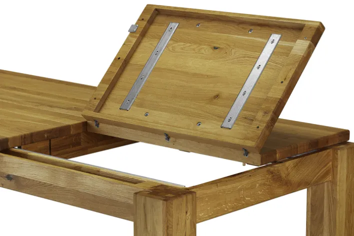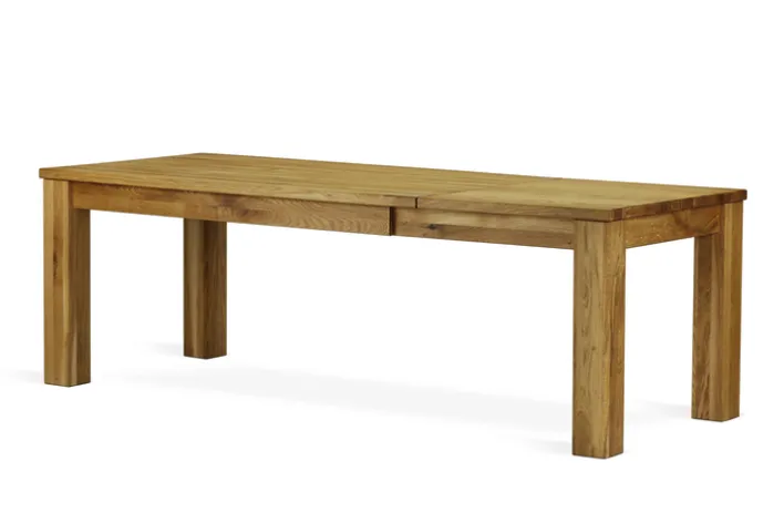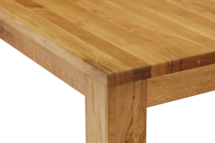 Der Esstisch aus der Serie ET JURIA 2 besticht durch seine robuste Bauweise und das zeitlose Design. Gefertigt aus massivem Eichenholz, bietet er eine natürliche Holzmaserung, die dem Tisch eine warme und einladende Ausstrahlung verleiht. Mit einer Breite von 230 cm, einer Höhe von 76 cm und einer Länge von 90 cm eignet sich der Tisch ideal für größere Essbereiche und bietet ausreichend Platz für gesellige Runden.
