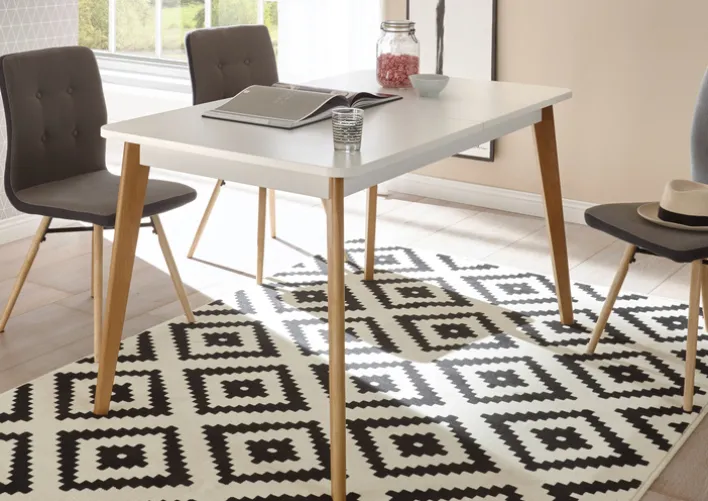Mit dem Esstisch LENA in den Farben Eiche Riviera/ Weiss Matt lässt sich der Essbereich mit einem schlichten, modernen Möbelstück bereichern. Neben seinem ansprechenden Skandi-Look überzeugt der Esstisch mit einer praktischen Auszugsfunktion.