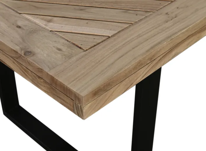 Die Tischplatte des Esstischs LUANDA besteht aus geschliffenem und lackiertem Massivholz. Die Oberflächen sind strapazierfähig und pflegeleicht. Das Untergestell des Esstischs ist aus Metall gefertigt und aufwendig lackiert.
