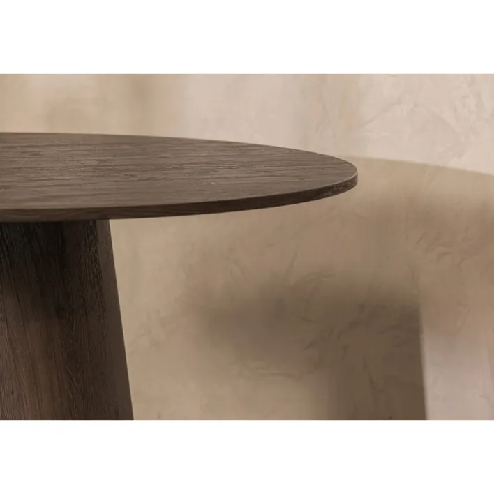 Als modernes Möbelstück kommt dieser Tisch besonders für den Wohn- und Essbereich infrage. Der stilvolle Esstisch MAAN ist mit einem Säulengestell aus einer Holznachbildung ausgestattet. Die braune Tischplatte besteht ebenfalls aus einer Holznachbildung und hat einen Durchmesser von 120 cm. Um den 30 Kilogramm schweren Tisch finden dazu passende Stühle ihren Platz. Das Produkt aus China besticht durch das runde Design und die Farbauswahl. Es kann so eigene Akzente im Wohn- und Essbereich setzen.