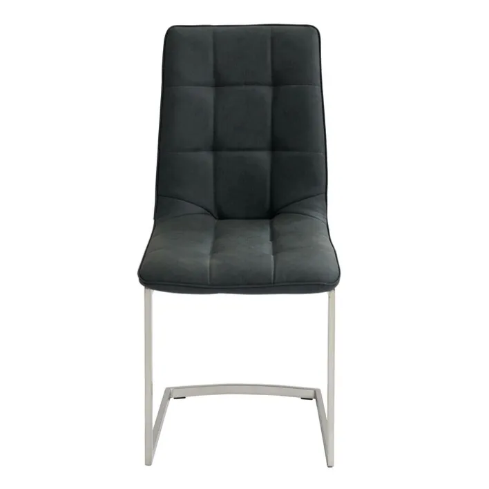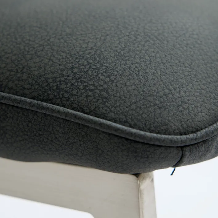 Der Freischwingerstuhl HURLEY besticht durch die Kombination von Edelstahloptik und anthrazitfarbenem Lederlook. Das Metall des Gestells ist gebürstet, die Lederoptik attraktiv geprägt.