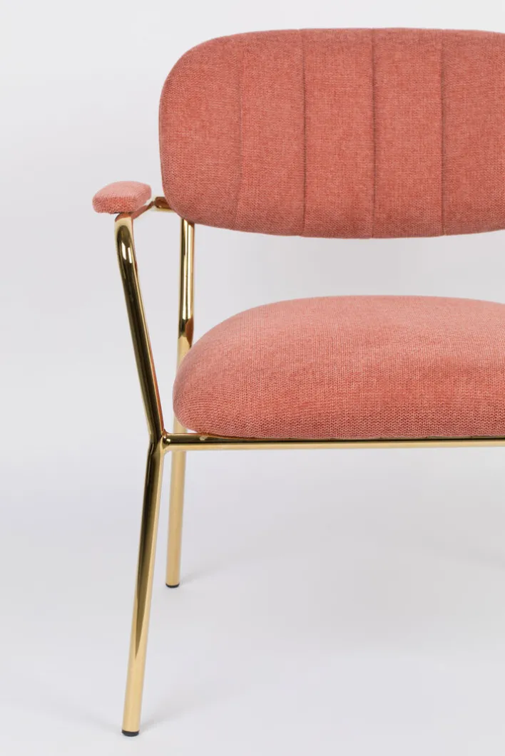 Der Esszimmerstuhl JOLIEN AL besteht aus einem Vierfußgestell aus pulverbeschichtetem Stahl in goldfarben und einem zweiteiligen Sitz mit strapazierfähigem Bezug aus 95% Polyester und 5% Nylon. Gepolstert mit PUR-Schaum ist der Esszimmerstuhl sehr bequem. Unterstrichen wird der Sitzkomfort von einer gebogenen Rückenlehen und den gepolsterten Armlehnen. Diese sind nicht nur beim Sitzen komfortabel, sondern erleichtern zudem das Aufstehen. Mit seinem trendigen Design ist der Esszimmerstuhl die ideale Wahl für moderne Esszimmer und offene Wohn-Essbereiche im angesagten Look.“
