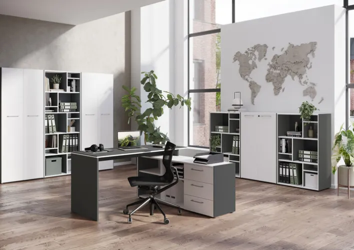 Das Facheinsätze PASADENA 5-teilig Anthrazit/ Weiß Set ist mit Melaminharz beschichtet und trägt bis zu 5 kg je Boden.