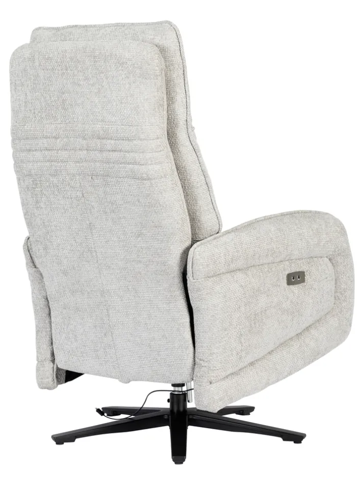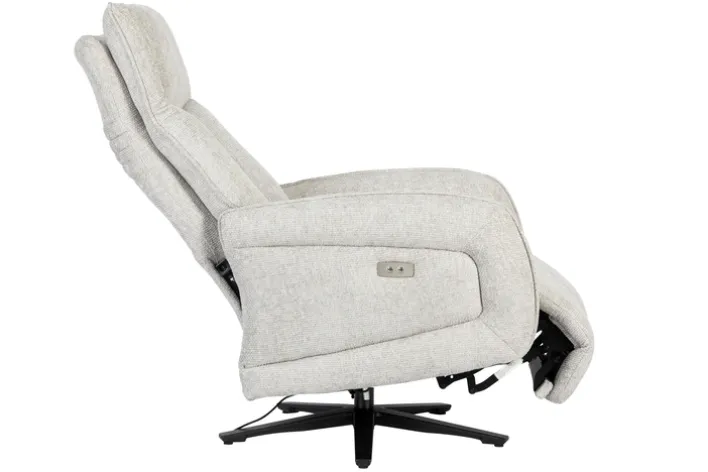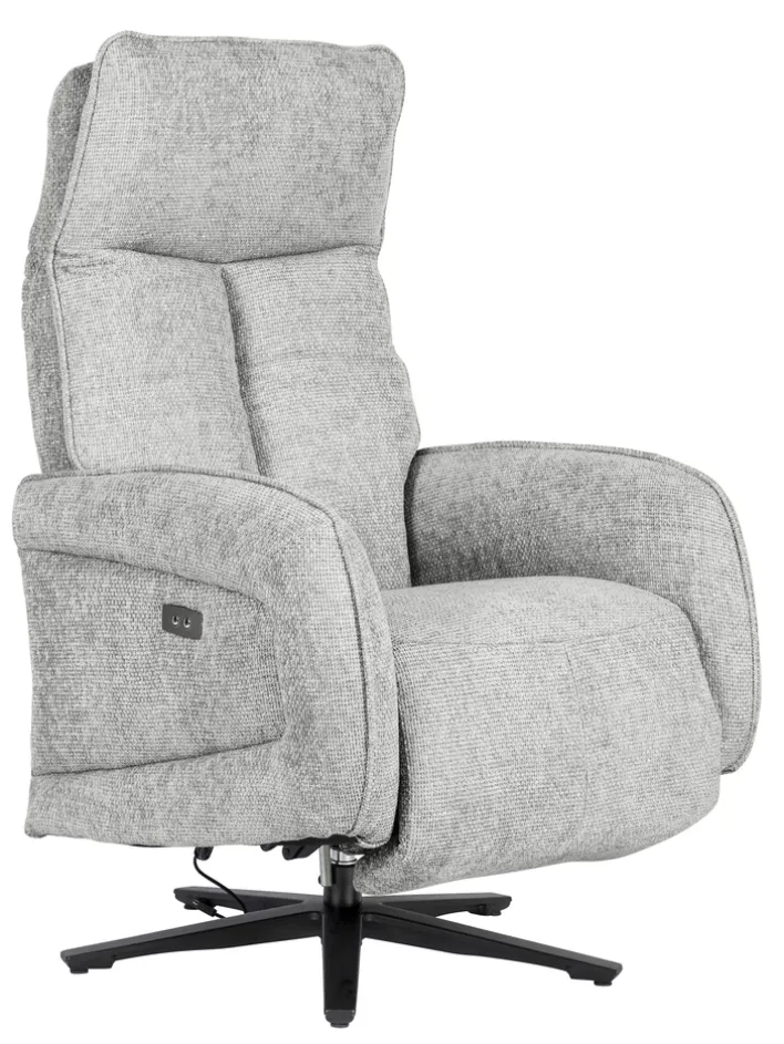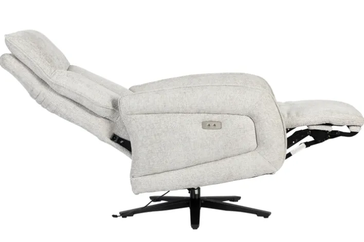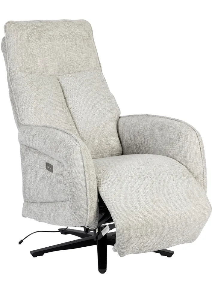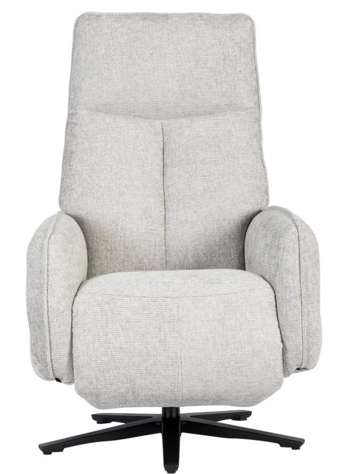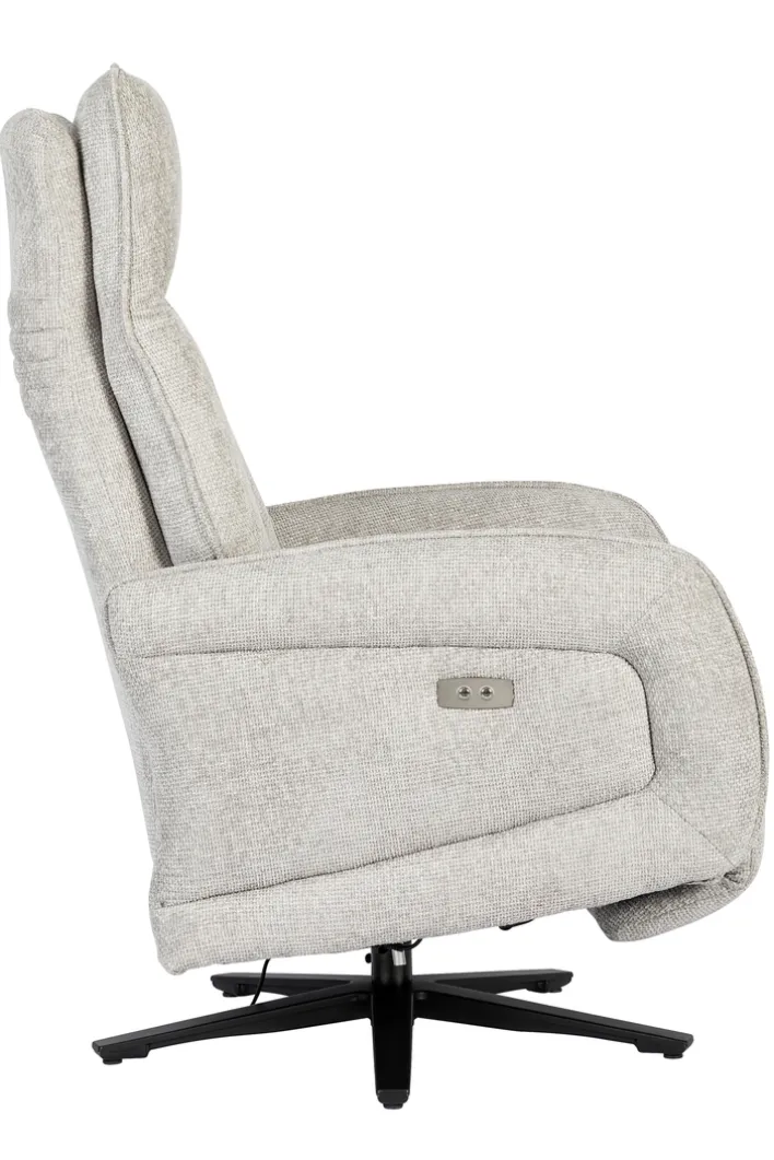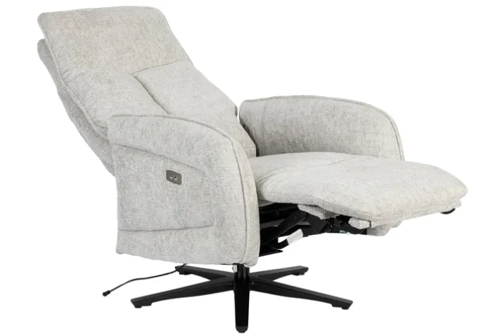 Der Sessel ist mit einer Relaxfunktion ausgestattet, die durch einen integrierten Motor unterstützt wird. Die verstellbare Rückenlehne und das Fußteil ermöglichen es, die Sitzposition individuell anzupassen und maximalen Komfort zu genießen. Der feststehende Armteil bietet zusätzliche Stabilität. Das Gestell aus Metall mit einem Sternfuß in Schwarz sorgt für einen sicheren Stand und unterstreicht das moderne Design des Sessels.