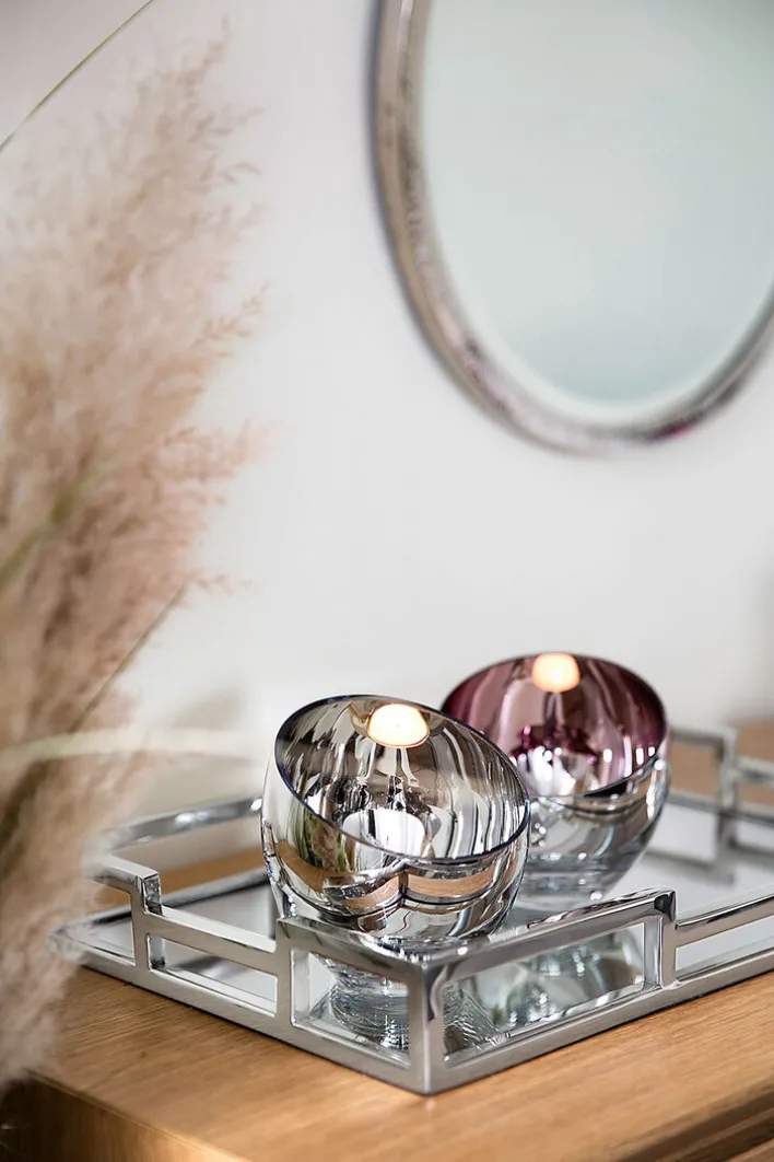 Kühl glänzende Silbertöne kombiniert mit einer warm flackernden Flamme. Der Teelichthalter CANDY zaubert eine behagliche Atmosphäre in jeden Raum. Die glänzende Oberfläche im Inneren des 11 cm hohen Gefäßes aus Glas sorgt für hübsche Lichteffekte, die besonders bei einsetzender Dunkelheit gut zur Geltung kommen.