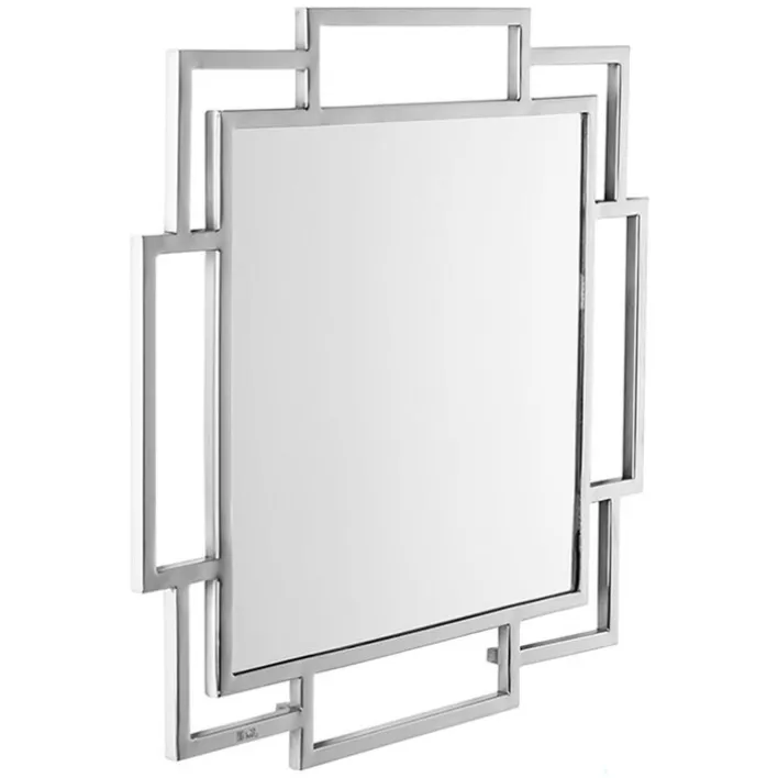 Der Wandspiegel HOMMAGE ist aus silberfarbigem Edelstahl und Spiegelglas gefertigt und begeistert mit seiner interessanten Form mit eckigen Rahmen im Rahmen. Mit seinen geometrischen Designelementen ist der Spiegel von Fink ein echter Blickfang im modern gestalteten Flur, dem Schlafzimmer oder dem Badezimmer.