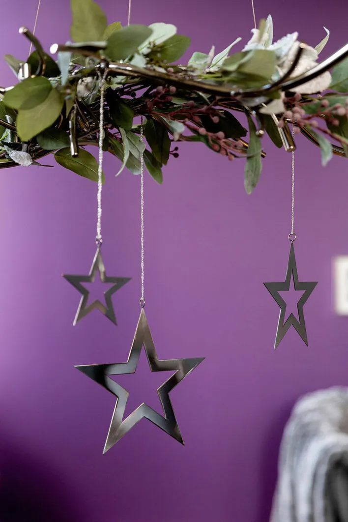 Hier kommt der Fink Weihnachtsbaumschmuck INSA. Der Stern ist 10,5 hoch und hat einen Durchmesser von 110 cm. Er ist aus silberfarbenem Edelstahl, ein Aufhänger ist inklusive.