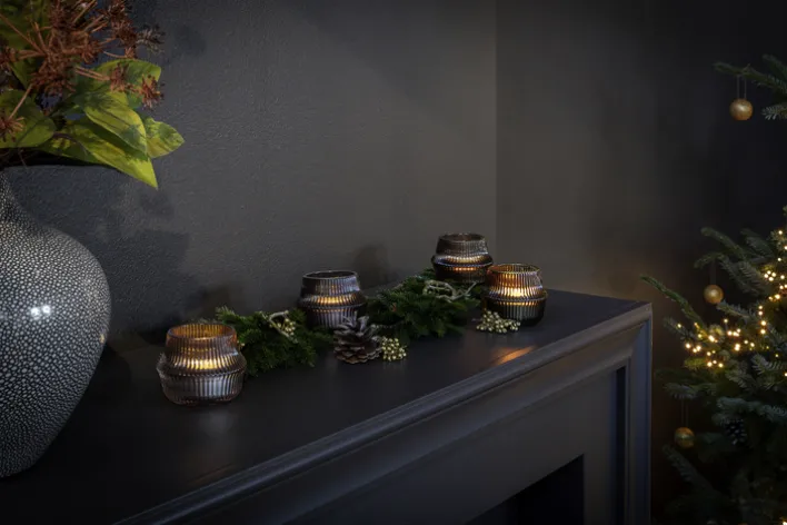 Mit dem FREYA olivfarbenen Windlicht aus dem Hause Fink erhalten kleine Teelichter fortan einen sicheren Platz – das Glas schützt die Umgebung ebenso wie es die Flamme gegen Wind absichert. Mehrere Teelichthalter lassen sich zudem zu einem kreativen Ensemble kombinieren. Auf der Terrasse, im Wohnzimmer oder in anderen Räumen: Für ein aufregendes Lichtspiel ist mit dem Windlicht gesorgt.