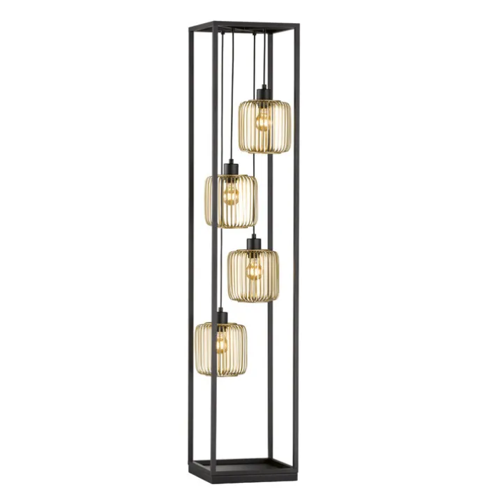 Die 150 cm hohe Retrofit Stehlampe CAYDO von FISCHER & HONSEL ist ideal für alle, die sich bei der Innenbeleuchtung nicht mit Allerweltslösungen zufriedengeben möchten. Sie geht mit ihrem einzigartigen Design und ihrer Mischung aus schwarzen und goldfarbenen Elementen ganz eigene Wege.