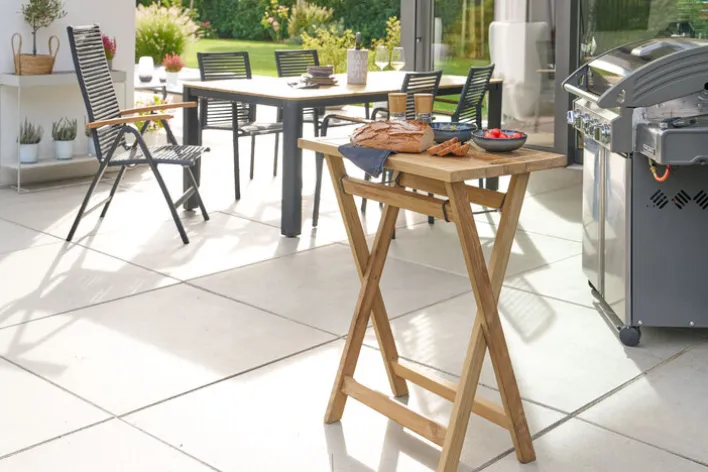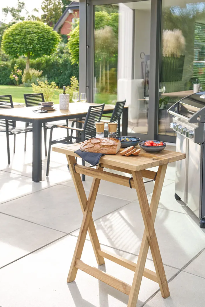 Ein richtiges Multitalent! Der Beistelltisch OTTO ist durch seine Höhe ein idealer Zubereitungstisch. Beim Grillen finden Zutaten darauf Platz, am großen Gartentisch dient er als Ablage. Auch auf dem Balkon macht er sich durch seinen geringen Platzbedarf gut. Wird er nicht mehr benötigt, ist der klappbare Tisch schnell zur Seite gestellt. Die abnehmbare Tischplatte kann als praktisches Tablett genutzt werden. Mit seiner gebürsteten Oberfläche gefällt der Tisch drinnen wie draußen gut. Bitte Hinweise am Artikel beachten!