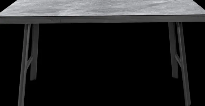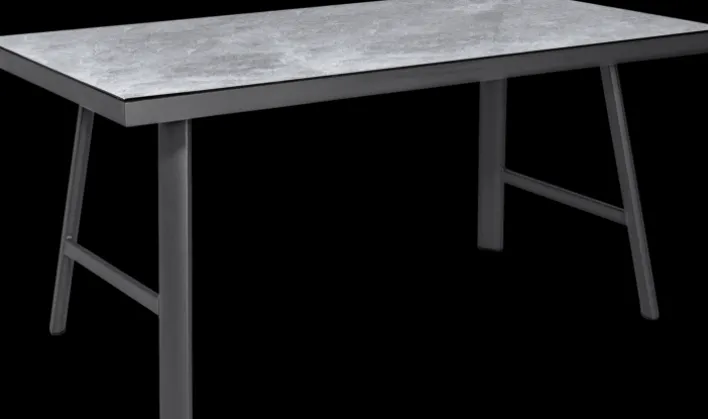 Beim Gartentisch LUNA A kommen solide Materialien wie anthrazitfarbiges Metall und steingraufarbige Keramik zusammen. Mit Abmessungen von 160 cm Länge und 90 cm Breite ist er ideal für Garten und Terrasse.