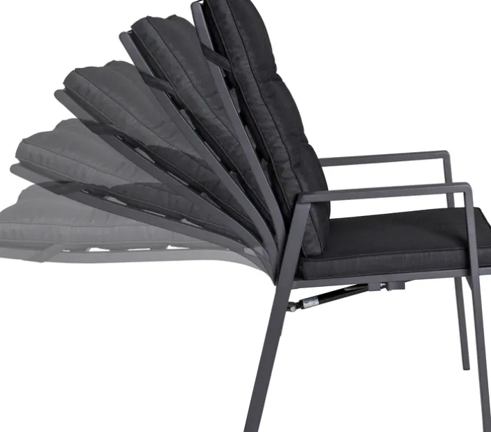 Eigenschaften Gartenmöbel: Armlehnen inklusiveDiningHochlehnerPolsterauflage inklusivePositionsstuhlRückenlehne verstellbar durch Knopfdruck seitlich der Sitzfläche