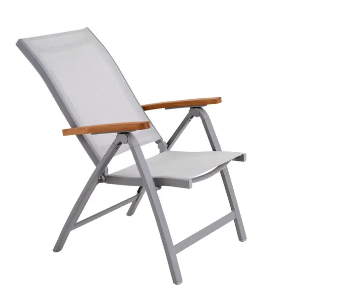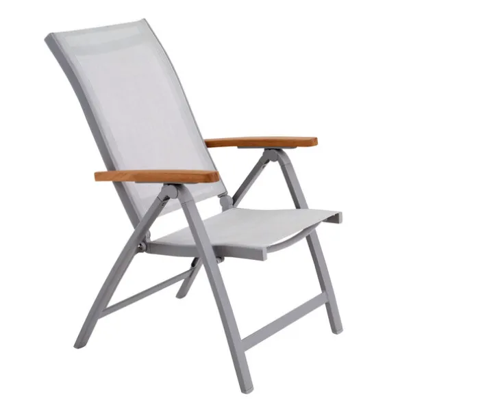 Der Garten Positionsstuhl SALZBURG zeigt sich in einem modernen Hellgrau und kreiert mit seiner hohen Lehne und den Armlehnen eine gemütliche Sitzgelegenheit für den Garten.