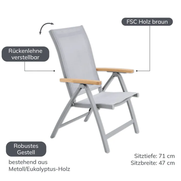 Eigenschaften Gartenmöbel: Armlehnen inklusiveDiningHochlehnerPositionsstuhlRückenlehne verstellbarklappbar