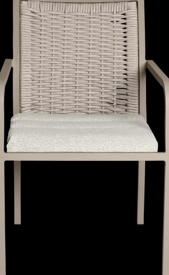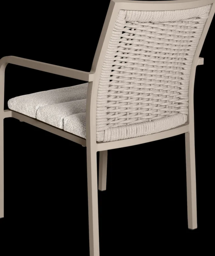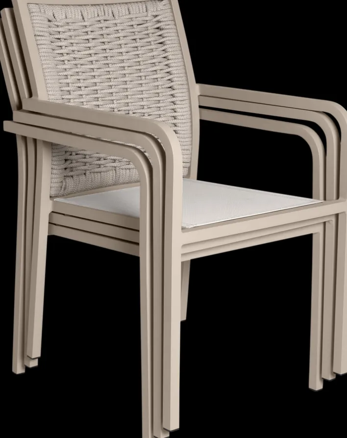Der Stapelstuhl Garten ROEN zaubert einen Hauch von Exklusivität in den Außenbereich. Dazu tragen cremige Farbtöne, aber auch ein ausdrucksstarkes Japandi-Design bei. Seine Geflechtoptik aus wasserabweisenden Outdoormaterialien gibt ihm eine angenehme Leichtigkeit. Das pulverbeschichtete Gestell aus Aluminium steht für Hochwertigkeit und die Sitzpolster mit Olefin-Oberfläche sorgen für bequemen Sitzkomfort. Zudem ist der Armlehnstuhl für Draußen stapelbar und kann dadurch platzsparend untergebracht werden.