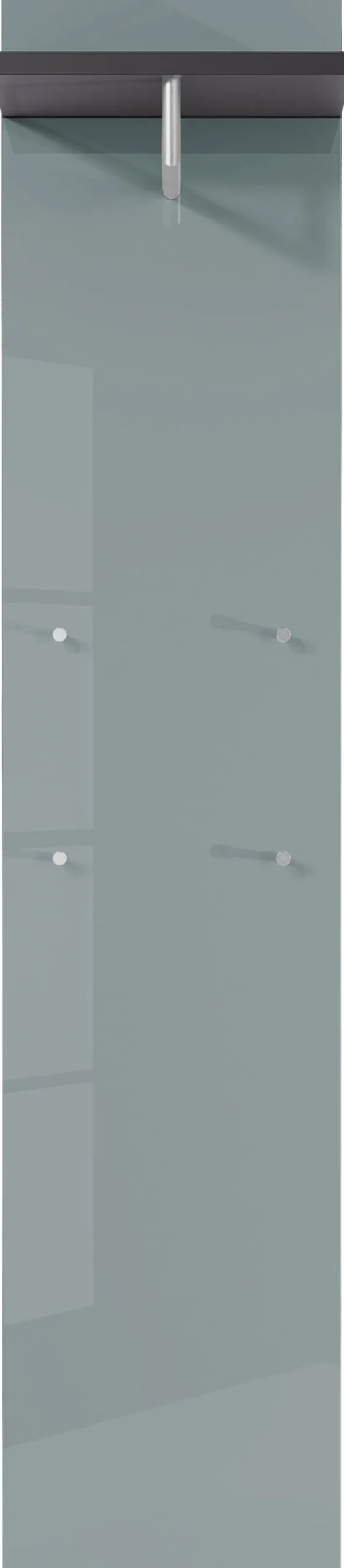 Das Garderobenpaneel aus der Serie Siriano vereint modernes Design mit praktischer Funktionalität. Mit einer Breite von 39 cm, einer Höhe von 190 cm und einer Tiefe von 30 cm bietet es ausreichend Platz für Ihre Garderobe. Die Hauptfarbe in Silbergrau/Graphit verleiht dem Paneel eine elegante und zeitlose Optik, die sich nahtlos in verschiedene Einrichtungsstile einfügt.