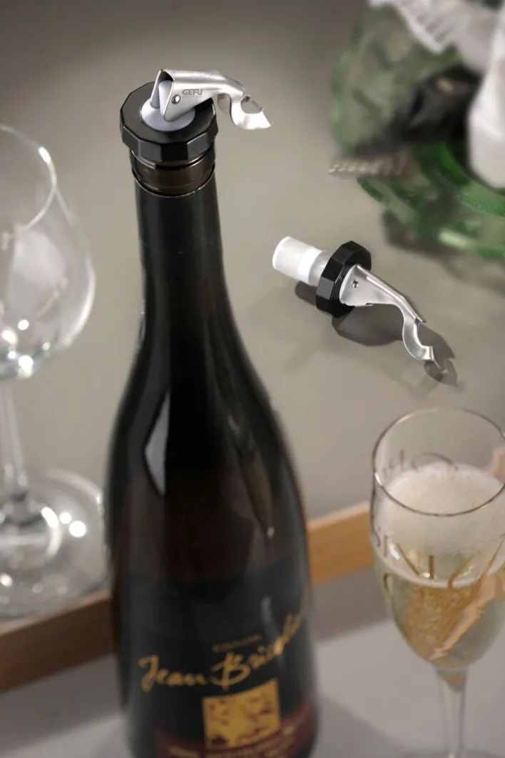 Der GEFU Flaschenverschluss wird im 2er Set geliefert. Er ist mit einem integrierten Flaschenöffner im Hebel ausgestattet. Beide Verschlüsse sind für die Spülmaschine geeignet.