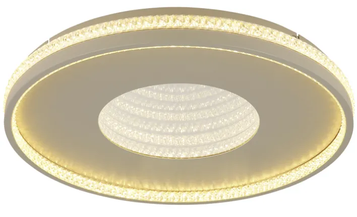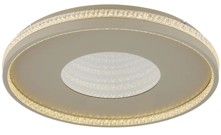 Die LED-Deckenlampe SHIRLEY von Globo vereint modernes Design mit 3D-Effekt und funktionaler Beleuchtung. Mit einem Durchmesser von 50 cm und einer Höhe von 6,5 cm fügt sich die runde Lampe harmonisch in jeden Raum ein. Die Hauptfarbe Beige mit einem sandfarbigen Ton verleiht der Lampe eine elegante Ausstrahlung, während der transparente Rand mit Kristalloptik für einen glamourösen Akzent sorgt. Die Lampe besteht aus einer Kombination von Kunststoff und Metall, was ihre Langlebigkeit und Stabilität unterstreicht. Die fest eingebaute LED-Beleuchtung bietet eine maximale Lichtleistung von 1.500 Lumen bei einem Energieverbrauch von 40 Watt. Die Lichtfarbe ist von 2.700 bis 6.500 Kelvin einstellbar, was eine flexible Anpassung an verschiedene Stimmungen ermöglicht. Die Lampe ist dimmbar und verfügt über eine Memory-Funktion sowie eine Nachtlichtfunktion. Mit der Schutzklasse 2 und der Schutzart IP20 ist sie für den Innenbereich geeignet. Eine Fernbedienung ist im Lieferumfang enthalten.