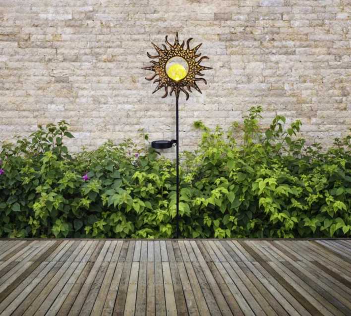 GLOBO, eine Marke, ein Anspruch, nämlich der, Möbel und Accessoires für Drinnen und Draußen hochwertig und mit anspruchsvollem Design auf den Markt zu bringen. Die LED Solarlampe NATALIA ist rund um die Uhr ein schmückendes Element für den Garten. Im Tageslicht gefällt ihr Sonnenmotiv, nachts setzt dank des Solar-Akkus und ihrer Leistung von bis zu 3000 k Wege und Sitzplätze im Garten gekonnt in Szene. Bei Nichtbedarf wird die Solarlampe einfach ausgeschaltet. Bitte Pflege- und Gebrauchshinweise beim Artikel beachten.