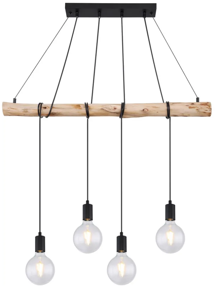 Das stilvolle Balkenpendel AUSTON von GLOBO vereint Funktionalität und Design. Diese Pendelleuchte beeindruckt mit einer Breite von 90 cm und einer Höhe von 120 cm, die durch Kabelwickung variabel ist. Sie besteht aus einer harmonischen Kombination von Metall und Holz, dessen Hauptfarbe ist braun ergänzt durch schwarz ist, was eine natürliche Farbgebung schafft. Die Leuchte verfügt über vier Brennstellen mit E27-Fassungen, die sowohl AGL als auch Retrofit-LEDs unterstützen. Die Leuchtmittel sind nicht enthalten, jedoch austauschbar, was Flexibilität bei der Lichtgestaltung ermöglicht. Mit einem maximalen Energieverbrauch von 240 W bietet sie ausreichend Helligkeit für jeden Raum. Die Schutzklasse 2 sorgt für zusätzliche Sicherheit. Das Design mit den sichtbaren Kabeln und der natürlichen Holzstruktur verleiht jedem Raum eine besondere Note.