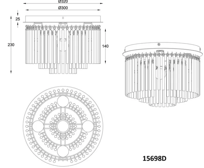 Das Gehäuse der Deckenlampe besteht aus Metall und ist lackiert. Die einzeln aufgehängten Stäbchen sind aus Rauchglas gefertigt. Für verschiedene Leuchtmittel bis zu 40 Watt, ist die Deckenlampe mit fünf E14-Fassungen ausgestattet.