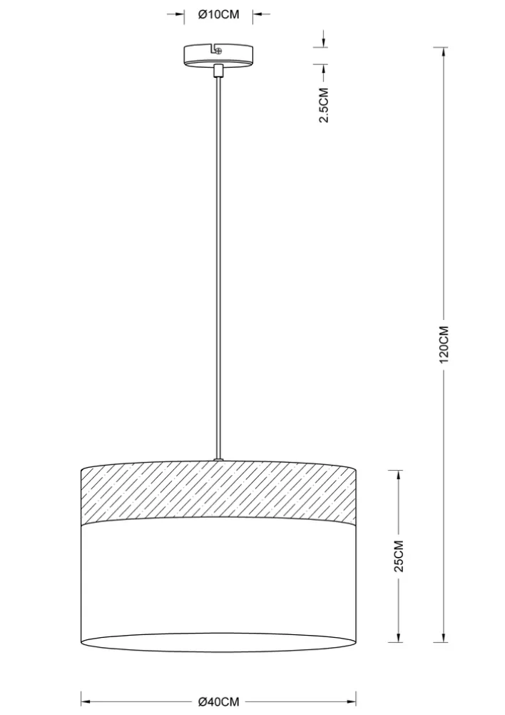 Der zylinderförmige Lampenschirm der Pendelleuchte CHIPSY besteht aus solidem Metall und Textil. Für den Einsatz verschiedener Leuchtmittel bis 60 Watt ist eine E27-Fassung eingebaut. Die CE-geprüfte Pendelleuchte ist für den Innenbereich geeignet.