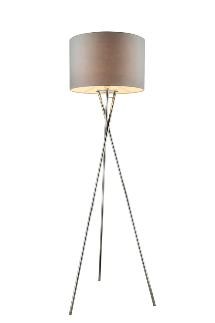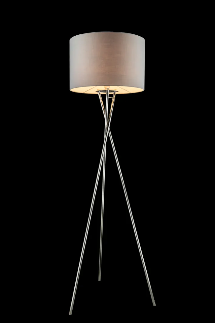 Die 1-flammige Retrofit Tripod Stehlampe GUSTAV von GLOBO hat eine Höhe von 160 cm und ist die perfekte Ergänzung für den modern eingerichteten Wohnbereich. Durch das tolle Design im angesagten Skandi-Stil ist die Leuchte mit ihrem chromfarbigen Dreifußgestell und einem Schirm in der Farbe Grau der Blickfang im Wohn- oder Esszimmer. Sie ist mit verschiedenen Möbeln gut kombinierbar und hat ihren Platz neben einem Sessel oder einer Polstergarnitur. Die Stehlampe sorgt für ein angenehmes Licht und schafft eine wohnliche Atmosphäre.