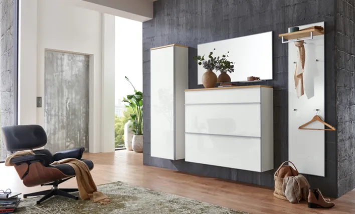 Die pulverbeschichtete Griffleiste aus Aluminium ist ein zusätzlicher Eye-Catcher, der die Hängekommode Vortina so besonders macht. Die praktische Wandkommode ist 120 cm x 102 cm groß und weist eine Ausladung von 31 cm aus. Mit 67 kg ist die Hängekommode Vortina fast ein Leichtgewicht. Ob mit Schuhen oder Accessoires bestückt – dieses Möbelstück ist ein echtes Must-have.