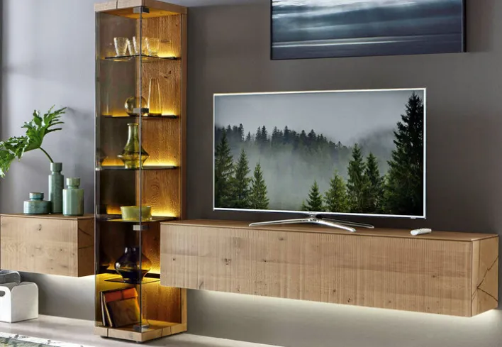 Mit der hartmann Wohnwand VARA in Kerneiche Umato Sägerau lässt sich das Wohnzimmer top modern gestalten und zugleich für ein behagliches Ambiente sorgen. Zudem bieten die eleganten Möbel viel Stauraum und Ausstellungsflächen.