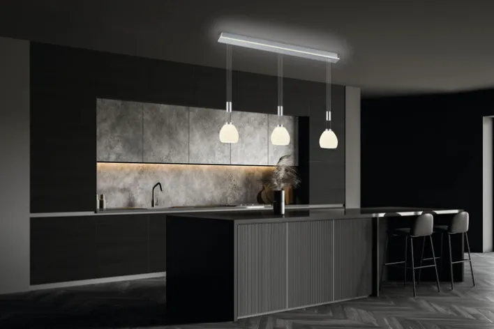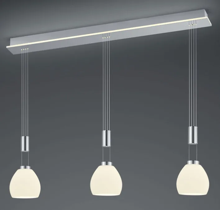 Das LED Balkenpendel SAM von HELL präsentiert sich in einer zeitgemäßen Optik und bietet zu jedem Anlass ein angenehm helles Licht. Mit einer Breite von 110 cm passt die nickelfarbige Lampe sehr gut über große Wohn- oder Esszimmertische. Die 3-flammige Pendellampe ist durch ihr zeitloses Design mit modernen oder klassischen Möbeln kombinierbar.