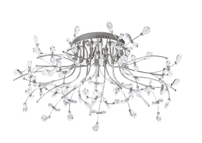 Die Deckenlampe CRYSTAL besteht aus einer Kombination aus Metall und Glas und begeistert mit einem topmodernen und zugleich verspielten Design. Die integrierten LEDs bieten eine energiesparende und helle Beleuchtung, sodass Sie diese Lampe gut als Hauptlicht im Wohn- oder Schlafzimmer einsetzen können. Die Lichtleistung der gesamten Lampe liegt bei 2900 lm. Die Farbtemperatur beträgt 3000 K. Außerdem können Sie sich auf eine Brenndauer von bis zu 30000 Stunden freuen. Mit ihrem ungewöhnlichen Design ist die Deckenlampe CRYSTAL außerdem ein gelungener Blickfang.