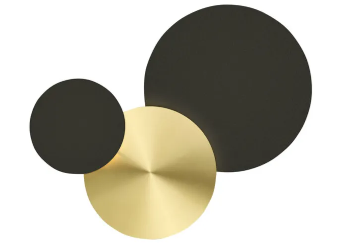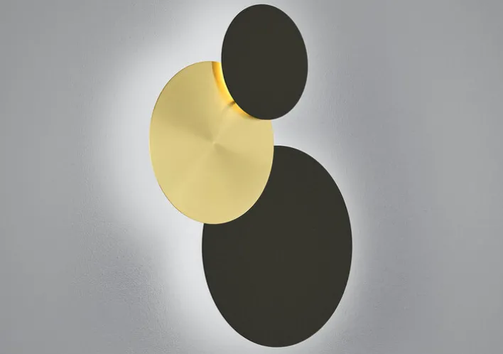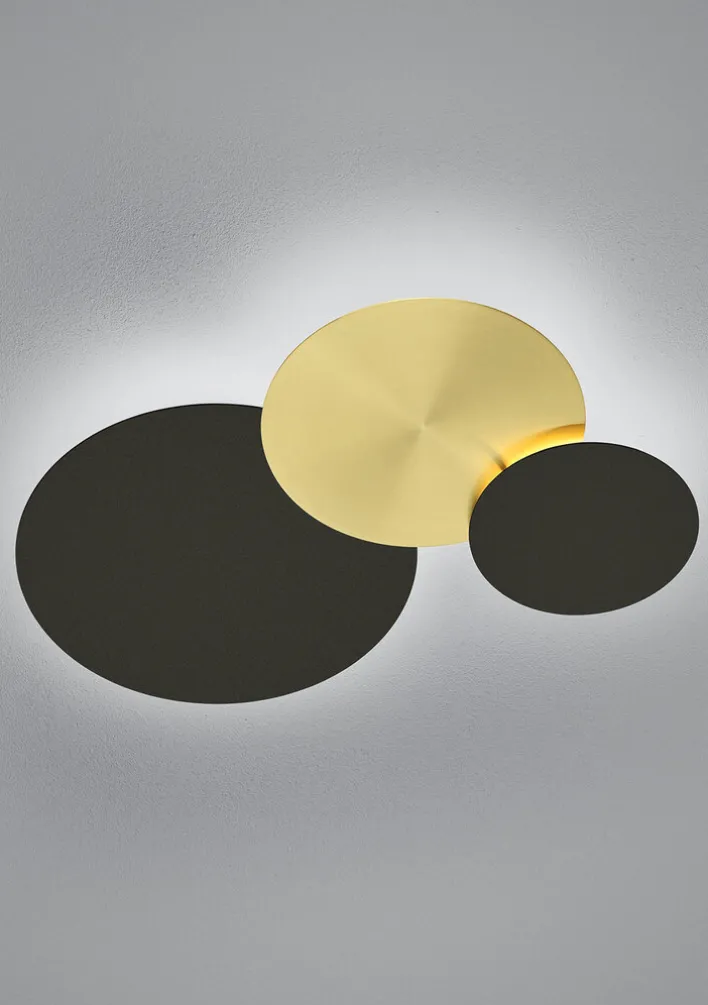 Die schwarz- und goldfarbene Wandleuchte TILDA mit einer Höhe von 51 cm ist ein stylisches Ensemble von drei runden Leuchtkörpern, das stimmungsvolle Helligkeit in jeden Innenraum bringt.