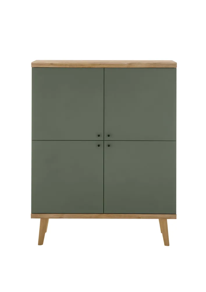 Das Highboard ALVA mit den Maßen 107 x 134 cm bietet mit seiner Kombination aus salbeifarbig und braun eine einzigartige Optik.
