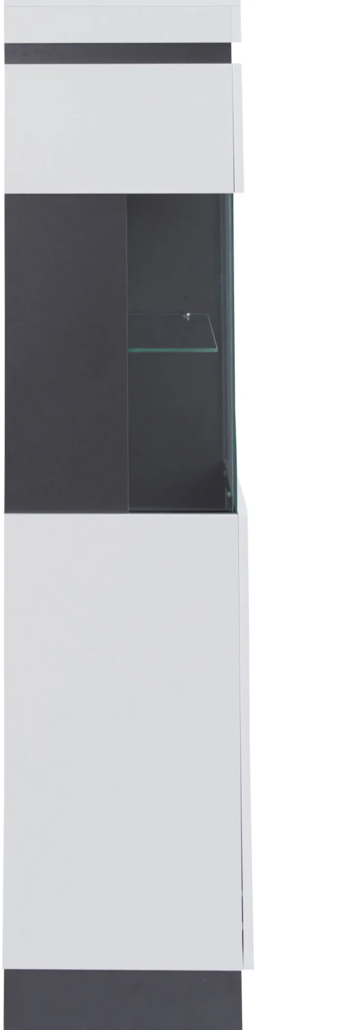 Das Highboard AMALIA besticht durch sein modernes Design und die Kombination aus Alpinweiß und Anthrazit. Mit einer Breite von 104 cm, einer Höhe von 164 cm und einer Tiefe von 40 cm bietet es ausreichend Stauraum. Die grifflosen Drehtüren und die klaren Linien unterstreichen den zeitgemäßen Stil.