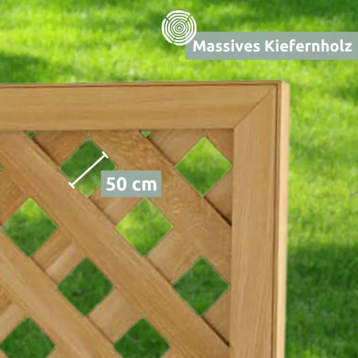 Hier hat richtig was Platz. Die Breite des holz4home Pflanzkasten ist perfekt für Balkon, Terrasse und überall da, wo ein Spalier oder leichter Sichtschutz gewünscht wird. Am durchbrochenen Gitter ranken sich im Sommer die schönsten Blumen, im Schatten gedeiht Efeu besonders gut. In der kalten Jahreszeit kann der Pflanztrog ganz nach Wunsch dekoriert werden, besonders hübsch wirken Tannenzweige und Schmuck aus Naturmaterial. Der Pflanzkasten SPALIER wird zerlegt geliefert, bitte Aufbau- und Pflegehinweise beachten.