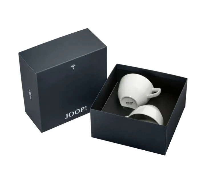 Das zweiteilige JOOP! Kaffeetassen-Set SINGLE CORNFLOWER besticht durch formschönes Design. Nichts lenkt von der klaren Formensprache ab – nur eine kleine, stilisierte Kornblume am inneren Rand der Tasse zieht den Blick auf sich.