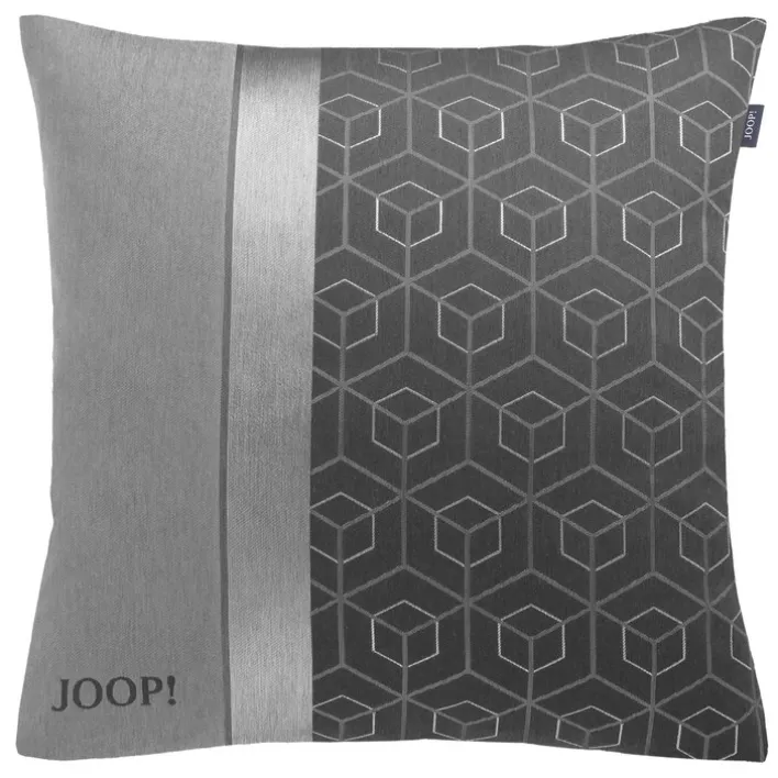 Das Material besteht zu 28 Prozent aus Baumwolle und zu 72 Prozent Polyester. Das hochwertige Gewebe kann vorsichtig bei 30 Grad gewaschen werden. Sehr schön ist auch die Wendeoptik der Hülle. So finden Sie einerseits eine rein graue und sehr edle Fläche; auf der anderen ist nicht weniger edel ein schönes Design zu erkennen: Auf der einen Hälfte der Fläche ist ein etwas breiter hellgrauer Streifen zu sehen. Ein ganz schmaler Streifen in Dunkelgrau trennt ihn von einem breiteren in Satinoptik. Dieser glänzt und schimmert im Licht und hebt die Qualität der Hülle besonders hervor. Mehr als die Hälfte des Designs gehört aber einer gemusterten Fläche. Die Grundfarbe ist dasselbe Dunkelgrau wie bei der Wendeseite. Darauf zeigen sich in einem Silbergrau Sechsecke und darüber liegende dreidimensionale Würfelkanten. Die JOOP! Kissenhülle METRIC kann viele Plätze schmücken, ob Bett oder Lieblingssessel. Und sie kann, mit einem passenden Kissen gefüllt, als Geschenk dienen.