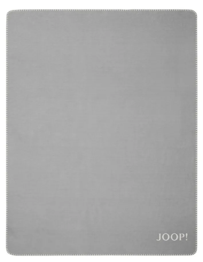 Die Wohndecke aus der Serie MELANGE DOUBLEFACE von JOOP! präsentiert sich in einem schlichten, einfarbigen Design in Grau. Mit einer Größe von 200 x 150 cm bietet sie großzügige Maße für vielfältige Einsatzmöglichkeiten im Wohnbereich. Das Material besteht aus einem hochwertigen Mischgewebe mit einem Naturfaseranteil von 58 % Baumwolle und einem Synthetikfaseranteil von 35 % Polyacryl sowie 7 % Polyester. Die Decke zeigt eine feine Webstruktur und ist auf beiden Seiten verwendbar, wobei eine Seite in einem etwas helleren Grauton gehalten ist. Auffällig ist der kontrastreiche Zierstich an den Kanten und das eingewebte, gut sichtbare JOOP!-Logo. Die Oberfläche wirkt angenehm weich und glatt, was für eine komfortable Haptik spricht.
