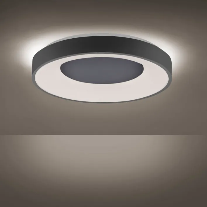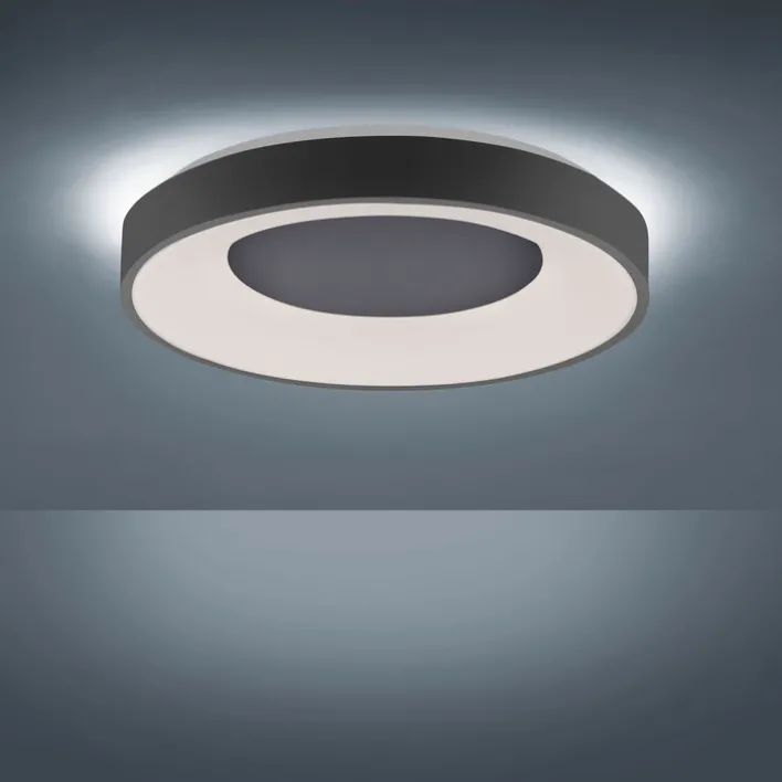 Die 1-flammige LED Deckenlampe ANIKA von JUST LIGHT mit integrierter CCT Technik punktet mit ihrem stilvollen Design. Durch ihre runde Form und die Oberflächen in der Farbe anthrazit ist die Lampe in nahezu jeden modern eingerichteten Wohnbereich integrierbar. Auch für die Küche oder den Eingangsbereich ist die Deckenlampe das ideale Beleuchtungselement. Dank des mattierten Diffusors entsteht ein Licht, das nicht blendet. Die Lichtfarbverstellung ist mit einer Fernbedienung möglich. Das Gehäuse der runden Deckenlampe und der Diffusor sind aus hochwertig verarbeitetem Kunststoff gefertigt. Das energieeffiziente LED-Leuchtmittel ist fest in das Gehäuse der Lampe eingebaut. Die Fernbedienung für die Verstellung der Lichtfarbe ist im Lieferumfang enthalten.