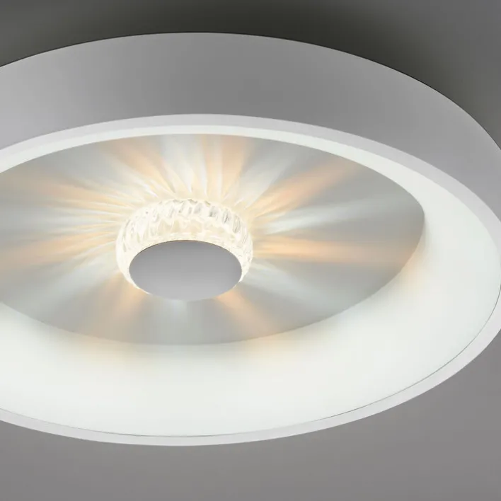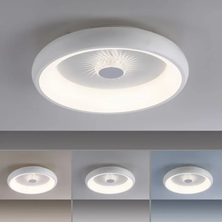 Die JUST LIGHT LED Deckenlampe VERTIGO hat einen Durchmesser von 46 cm, sie ist 10 cm hoch. Sie ist weiß, einflammig, dimmbar und verfügt über eine Lichtfarbverstellung. Diese elegante Lampe gefällt! VERTIGO sorgt für angenehm wohnliches Licht in Innenräumen, egal, ob im Schlafbereich, im Wohnzimmer oder im Flur. Ihr schönes Design wird durch den Kristalleffekt betont, der an klassische Leuchter erinnert. Gemütlich von der Couch aus kann via Fernbedienung die Lichtfarbeinstellung und die Helligkeit reguliert werden. So lässt sich einfach mit einem Handgriff das Licht auf die ganz persönliche Stimmung abstellen. Die LED-Leuchtmittel sind fest eingebaut. Eine Montageanleitung kommt mit der Lampe ins Haus.