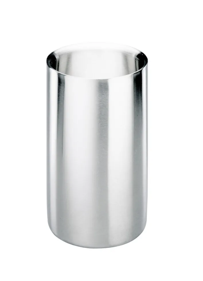 Der chromfarbige Champagnerkühler ALBA aus wurde aus hochwertigem Edelstahl hergestellt. Er ist 11 x 11 x 18,8 cm groß und ist der ideale Partner für perfekt temperierte Getränke.