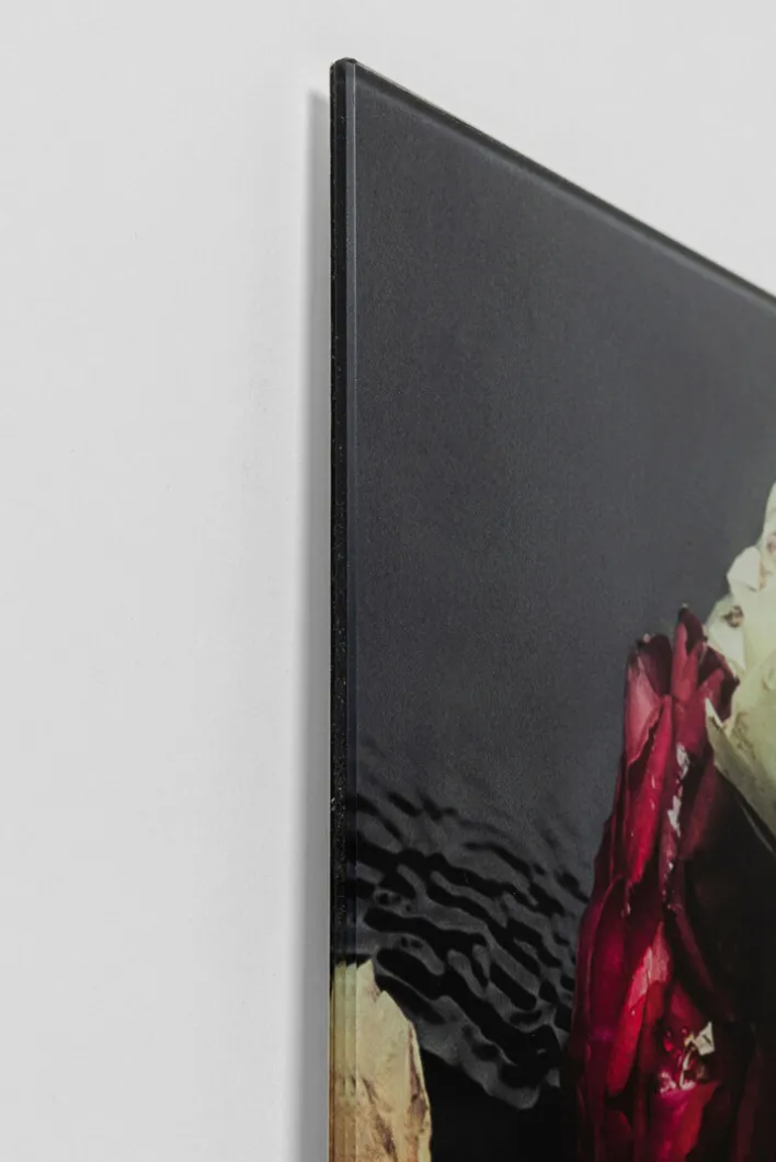 Das mehrfarbige KARE DESIGN Bild FLOWER hat eine Größe von 120 x 120 cm und begeistert mit einem düsteren und zugleich sehr farbenfrohen Design, das sofort alle Blicke auf sich zieht. Das Bild hat eine quadratische Form und zeigt das Porträt einer Frau. Sie trägt einen Hut aus bunten Blumen verschiedener Art. Während Ihre Haut sehr hell ist und schon fast bläulich schimmert, zeigt sich der Hintergrund in dunklem Schwarz, sodass ein gelungener Kontrast entsteht. Hängen Sie das Bild über der Sofaecke im Wohnzimmer oder über dem Bett im Schlafzimmer auf. Auch als Dekoration für den Eingangsbereich ist es hervorragend geeignet.