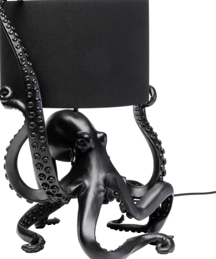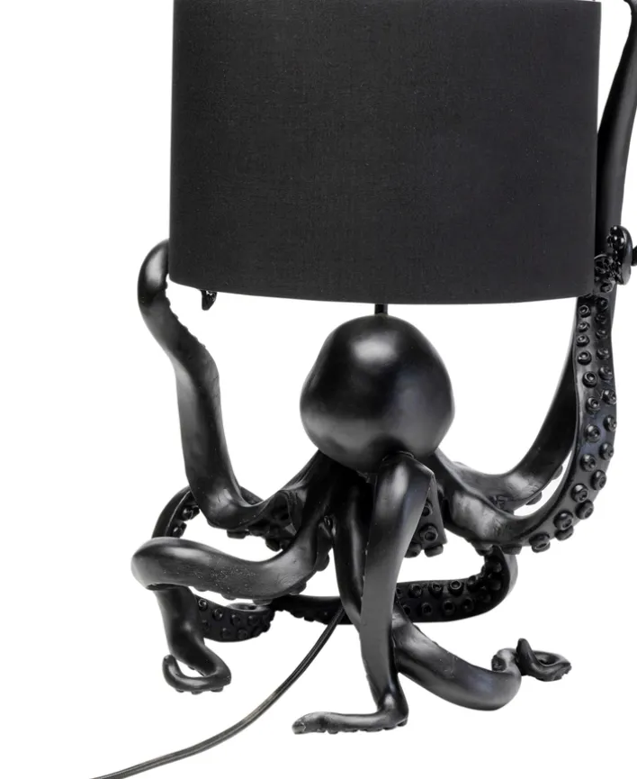 Diese Leuchte besticht durch ihre auffällige Form eines Oktopus, dessen Tentakel kunstvoll den Lampenschirm umschlingen. Gefertigt aus schwarzem Polyresin, verleiht sie jedem Raum einen Hauch von Glamour und zieht alle Blicke auf sich.