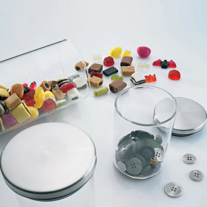 Die Vorratsdose besteht aus hochwertigem Glas und hat eine zylindrische Formgebung. Der Deckel besteht aus Edelstahl und sorgt für einen luftdichten Verschluss, sodass Lebensmittel länger frisch bleiben. Der Deckel hat eine kreisrunde Form und eine leicht matte Oberfläche. Die Vorratsdose eignet sich beispielsweise als Aufbewahrung für Mehl, Zucker, Haferflocken sowie für viele andere Lebensmittel. Aufgrund ihrer stilvollen Optik lässt sie sich gut in einem offenen Regal aufstellen. Sie harmoniert besonders gut mit zeitgemäße einrichtete Küchen, passt aber auch zu anderen Einrichtungsstilen ganz hervorragend.