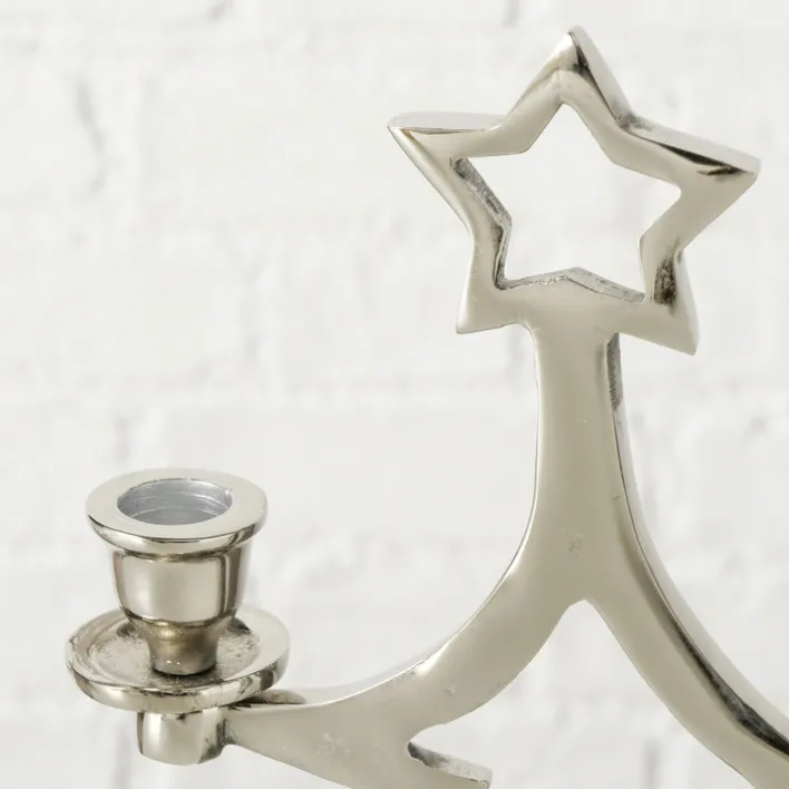 Der Kerzenständer der Serie GRANTE besticht durch sein elegantes Design in Form eines stilisierten Weihnachtsbaums. Gefertigt aus hochwertigem Aluminium, präsentiert er sich in einer ansprechenden Alu-/Nickelfarbe mit vernickelter Oberflächenbeschichtung. Diese Kombination verleiht dem Kerzenständer nicht nur eine edle Optik, sondern auch eine robuste Langlebigkeit. Mit einer Breite von 17 cm, einer Höhe von 35 cm und einer Tiefe von 47 cm ist er ein markanter Blickfang auf jedem Tisch oder Sideboard.