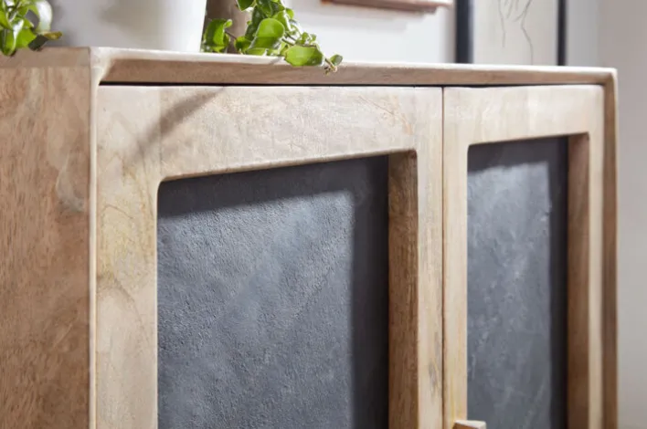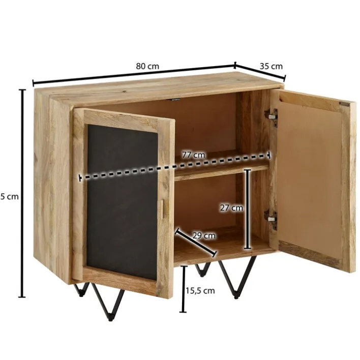 Kommode 80 x 75 cm Schwarz/ Mango massiv