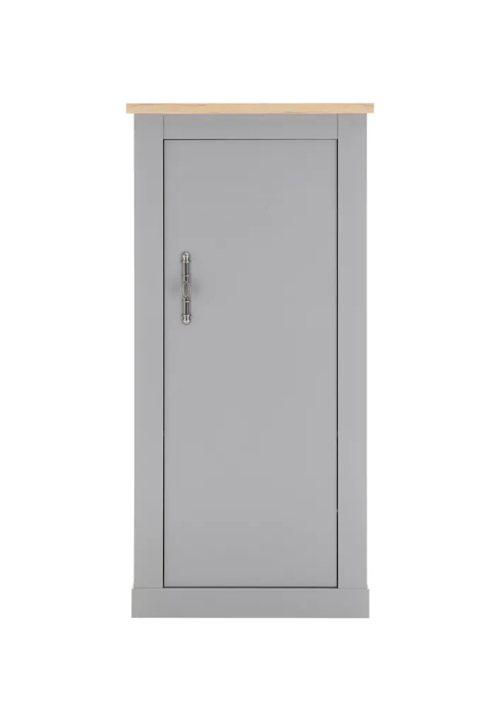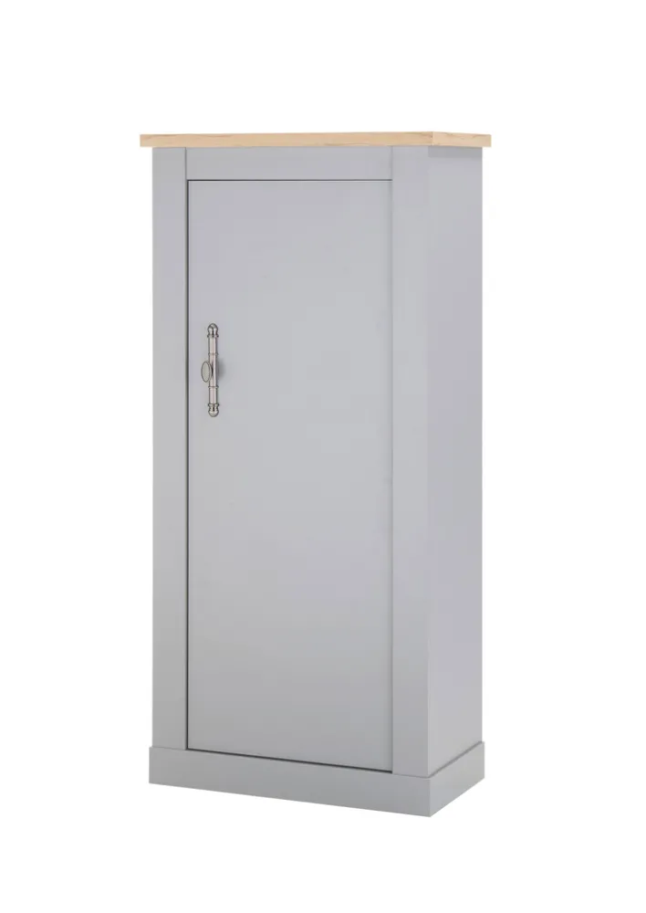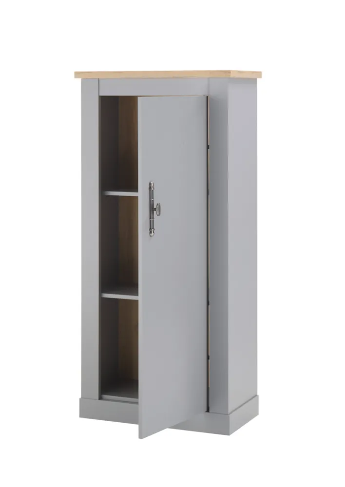Optisch begeistert die Kommode CHAMBORD mit ihrem interessant gestalteten Griff aus Metall und den Applikationen im Artisan-Oak-Dekor. Sie ist aus einer hochwertigen Holznachbildung hergestellt. Zum Öffnen und Schließen dient eine praktische Drehtür. Der großzügige Stauraum im Inneren wird durch zwei Einlegeböden unterteilt. Dadurch können Kleidung, Wäsche und diverse Gegenstände übersichtlich eingeräumt werden. Dank ihrer unaufdringlichen, aber edlen Optik funktioniert die Kommode in fast jedem Wohnambiente. In Wohn- oder Schlafzimmer kommt sie hervorragend zur Geltung.