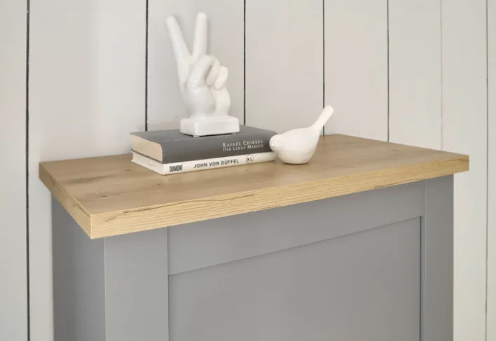 Die 68 x 142 cm große Kommode CHAMBORD kombiniert die Farbtöne hellgrau und braun und besticht mit ihrem dezenten, zeitgemäßen Design. Sie ist in verschiedenen Wohnbereichen einsetzbar.