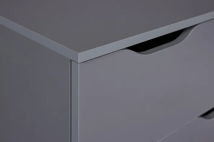 Die funktionale Kommode LION im Farbton graphitgrau ist eine Bereicherung für modern eingerichtete Wohnbereiche und bringt viel Stauraum mit. Durch das frische und freundliche Design mit grifflosen Fronten ist die Schubladenkommode ein Blickfang für Wohn- und Schlafzimmer. Auch für das Kinderzimmer ist sie ideal. Vier große und zwei kleine Schubkästen mit Griffmulden bieten Platz für verschiedene Wohnaccessoires, Wäsche, Spielzeug und Kleinteile. Die Kommode verleiht Einrichtungen einen besonderen Charme.
